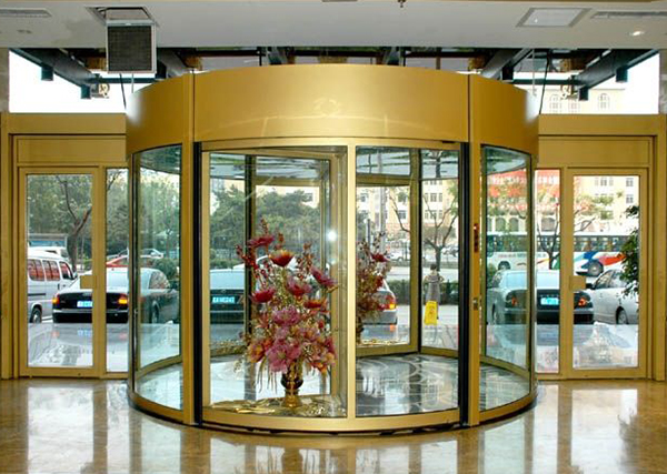 有3个门扇的旋转门就是三翼的旋转门,它由三大部件组成,即:固定框架、中心轴组件和旋转组件。同时兼顾建筑物进口通过性和环境隔离这两个安全相反的要求,有效地起到了防风、防尘、隔音的作用,并具备了的安全,在安全防夹、防碰、调速等性能上都有优越的表现,从而改善入口附近的环境,若加上展箱装置,更增添了完美的装饰效果。